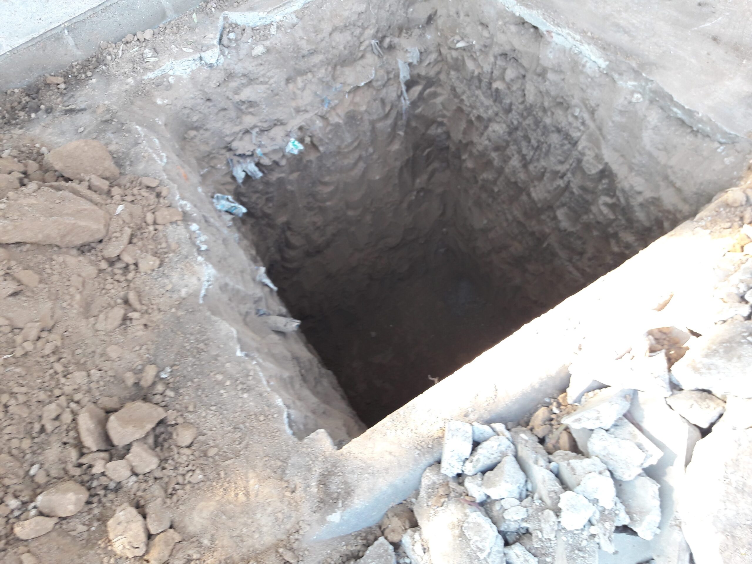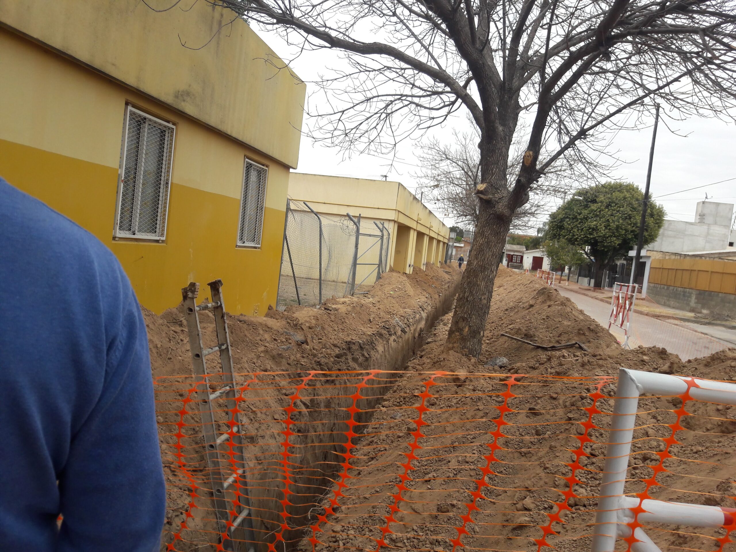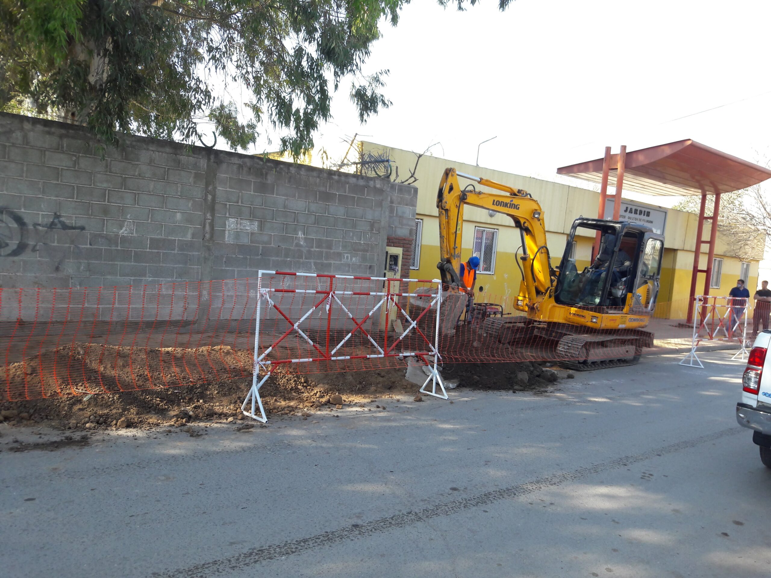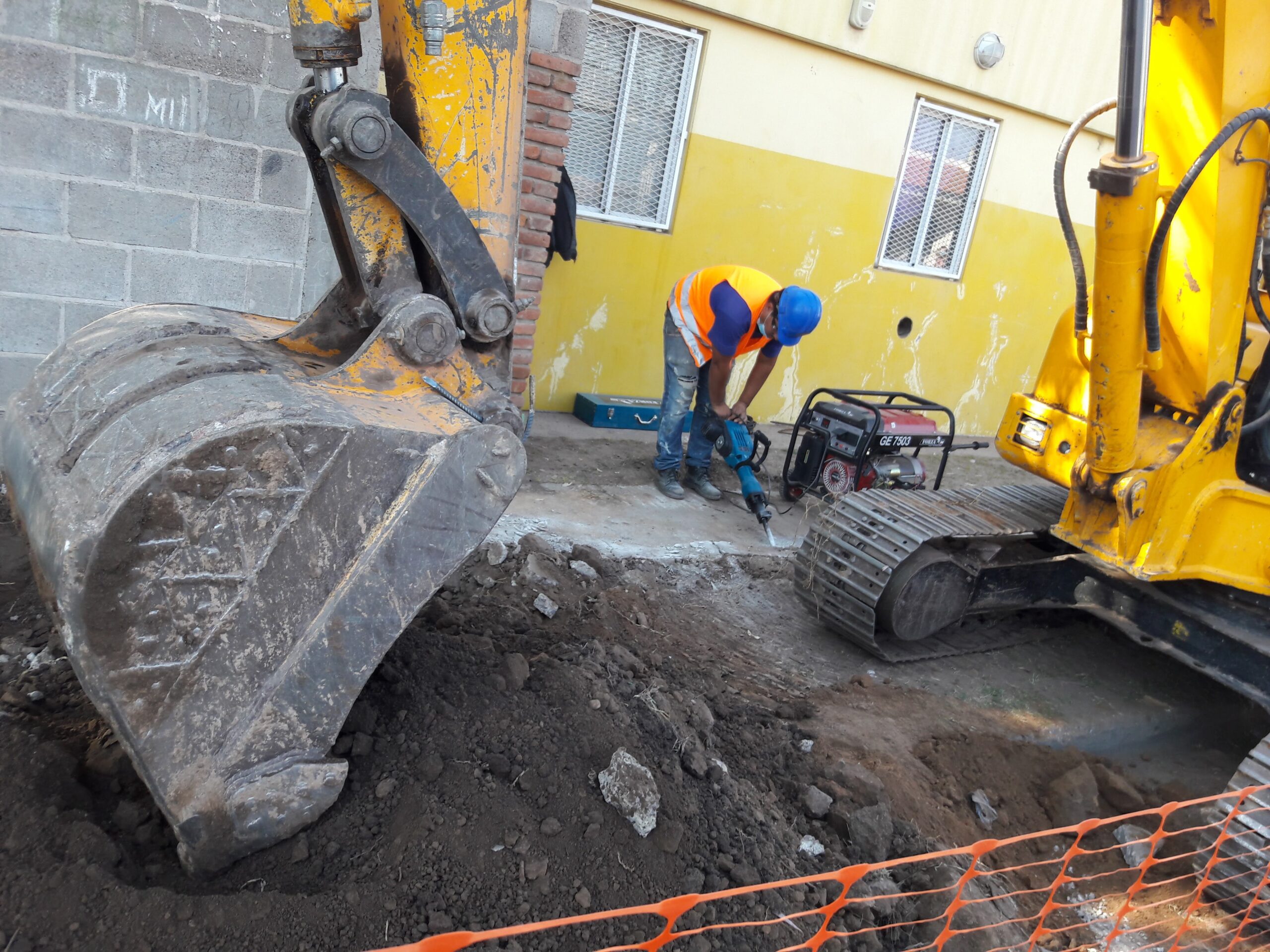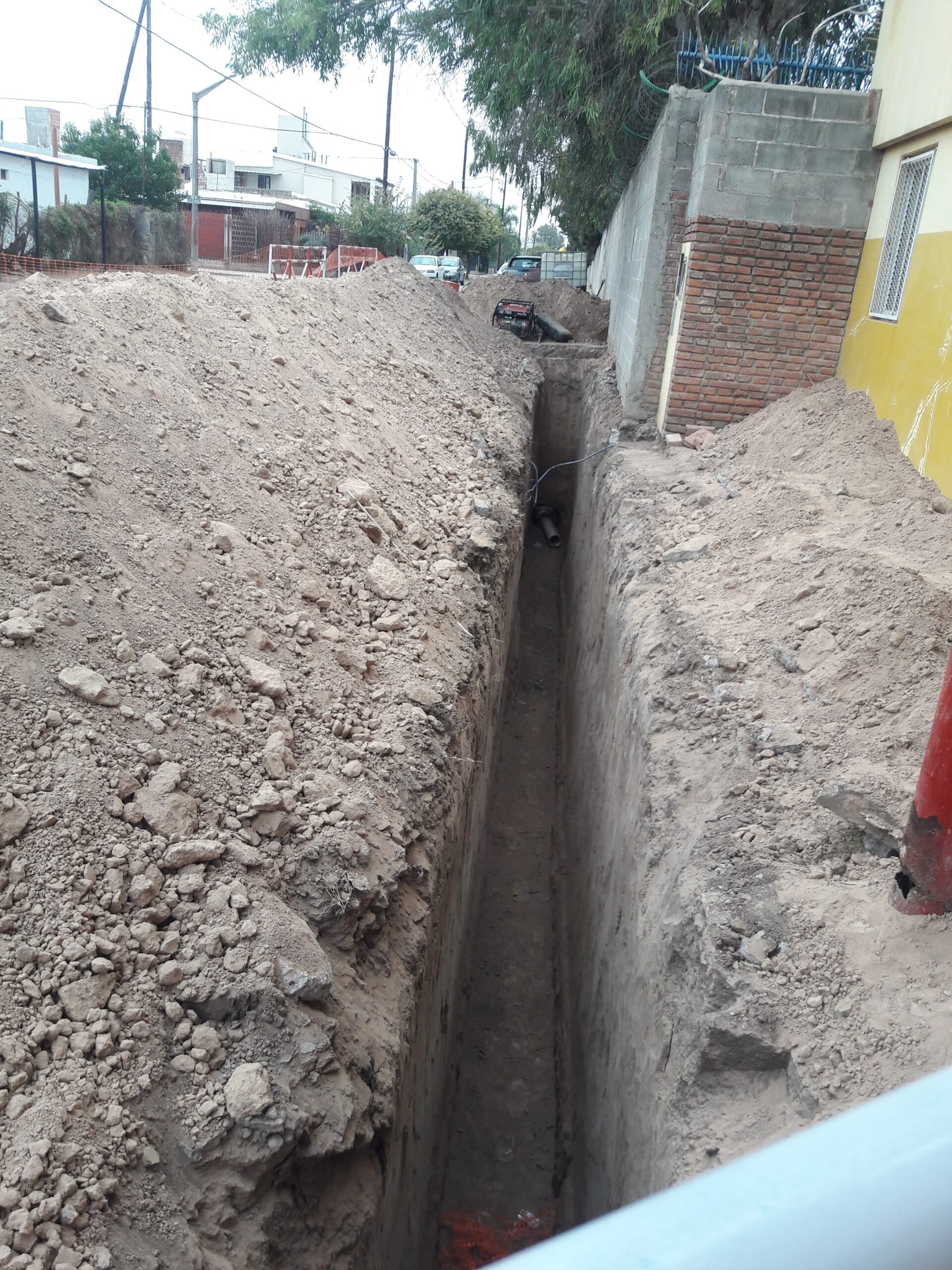 En las imágenes se puede ver la ejecución de la excavación de zanjas con las medidas de seguridad correspondientes.